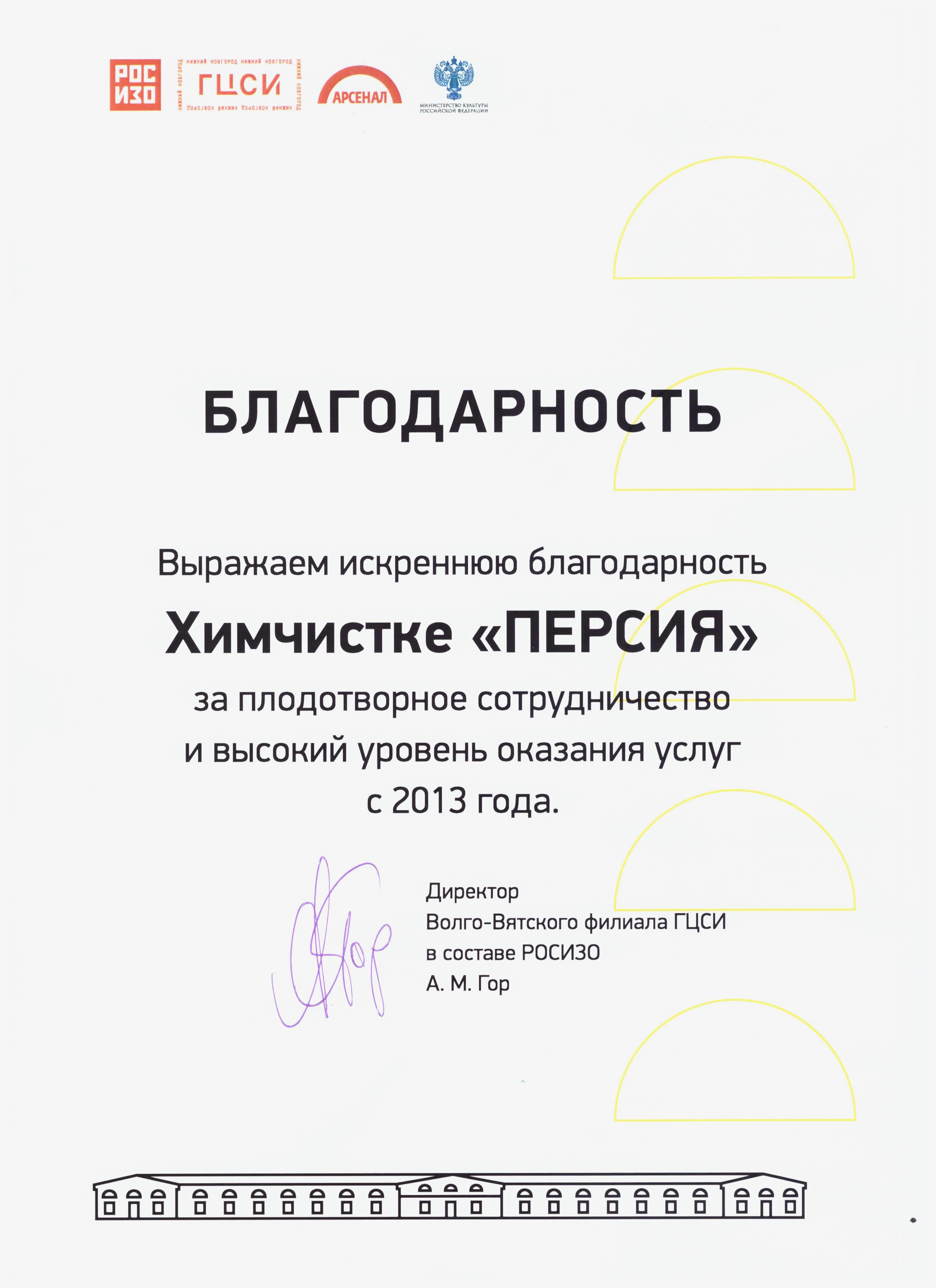 Государственное казенное учреждение «Социально-реабилитационный центр для несовершеннолетних «Вера» Московского района города Нижнего Новгорода» выражает искреннюю благодарность Екатерине Геннадьевне Павловой, которая являясь руководителем предприятия "Персия", вот уже в течении трех лет, безвозмездно помогает детскому приюту "Вера" создавать уютную атмосферу для наших маленьких воспитанников. Мы признательны Вам и Вашим сотрудникам за неравнодушное отношение к детям оставшимся без родительского тепла. Оказанное Вами участие помогло маленьким гражданам ощутить особую заботу и внимание к их жизни. Желаем Вам здоровья, интересных замыслов, их благополучных воплощений, ярких, значительных событий, личного счастья и дальнейшего процветания.